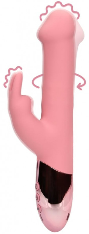 Ярко выраженная головка вибратора точечно воздействует на G-зону, блок металлических шаров в стволе интенсивно ласкают стенки лона при вращении, а клиторальный стимулятор в виде зайки с ушками значительно увеличивает накал страсти, работая снаружи!